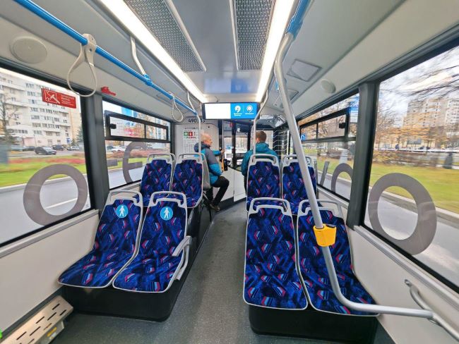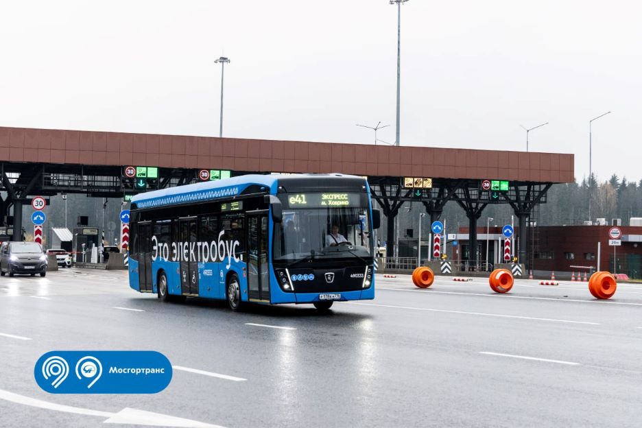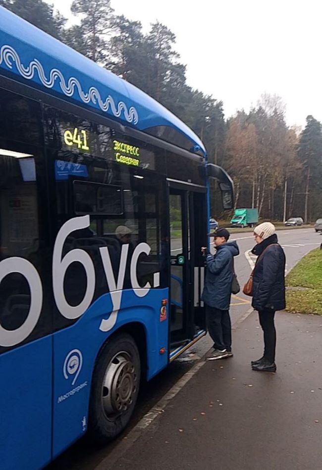 На маршруте е41 между Зеленоградом и метро «Ховрино» теперь ездит ездит электробус КамАЗ-6282. Машина вмещает до 85 пассажиров, 35 сидячих мест. Едет бесшумно и плавно. В остальном похож на автобусы НефАЗ, курсирующие на этом и других маршрутах, — зарядки для гаджетов, медиаэкраны, низкий пол, видеокамеры, валидаторы у каждой двери.