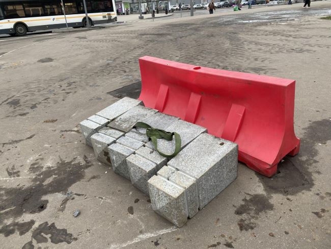 Демонтированные столбики используют в качестве ограждений для пешеходной зоны. Эти работы проведут завтра.