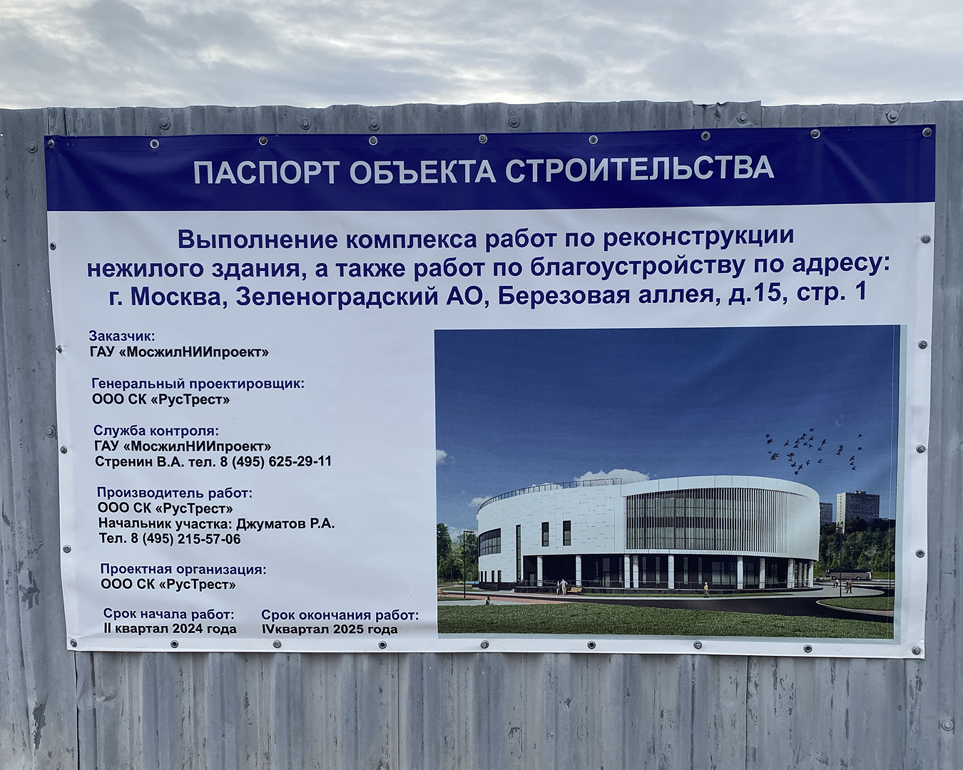 Контракт в части сроков изменили в октябре прошлого года, затем в январе нынешнего — продлили до 30 сентября. Но сейчас в департаменте капитального ремонта «Зеленоград.ру» сообщили, что окончание работ планируется только в 4-м квартале 2026 года: на информационном щите указан прежний срок. Очередной сдвиг сроков объяснили корректировкой архитектурно-планировочного решения и проекта строительства.