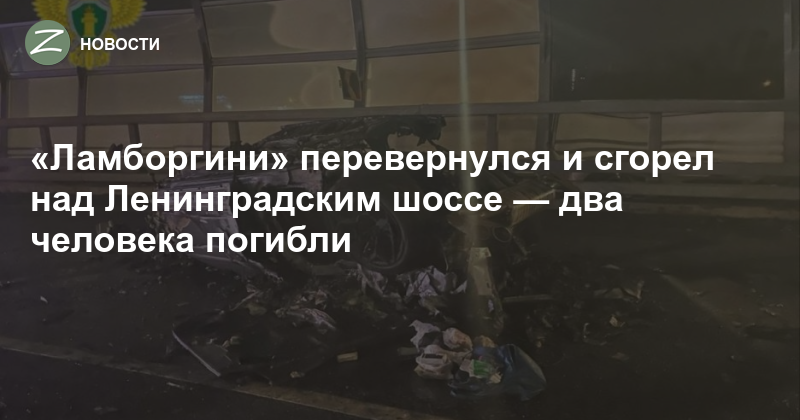 Авария произошла ночью на съезде с Международного шоссе. Водитель автомобиля «Ламборгини» совершил наезд на препятствие, после чего машина перевернулась и загорелась.