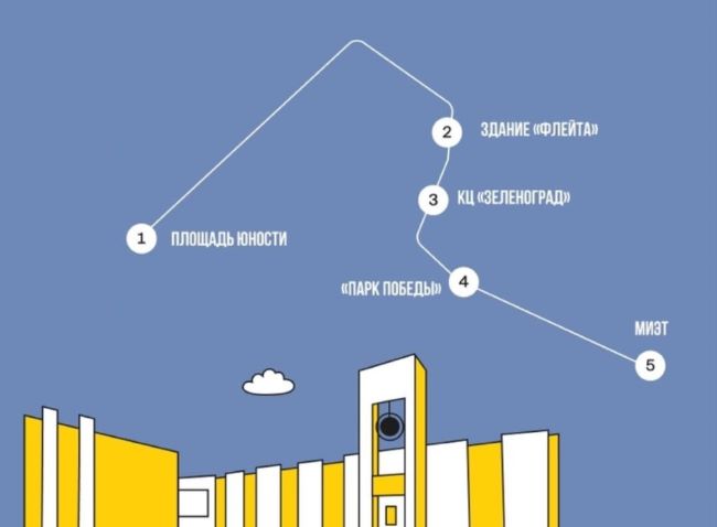 Для зеленоградца маршрут привычный: площадь Юности, дом-«Флейта», ДК, парк Победы, МИЭТ. Но для приезжих он позволит за часовую прогулку на велосипеде или самокате увидеть знаковые места города — фактически музей архитектуры советского модернизма под открытым небом.