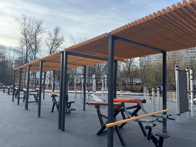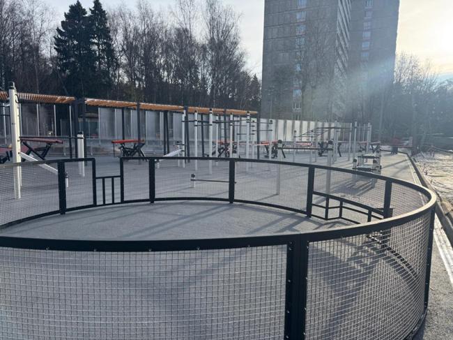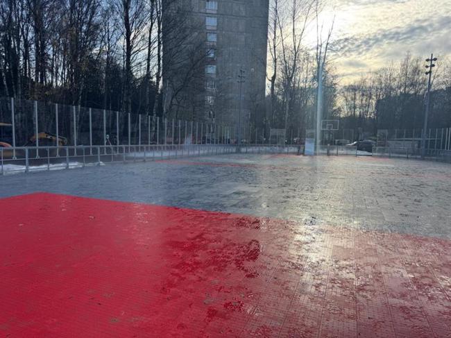 У корпуса 165 завершаются работы по созданию круглогодичной спортивной площадки. Зимой здесь будет действовать хоккейная коробка с искусственным льдом, а летом можно будет играть в мини-футбол, волейбол, бадминтон и баскетбол. Рядом установлены тренажёры и площадка для панна-футбола.