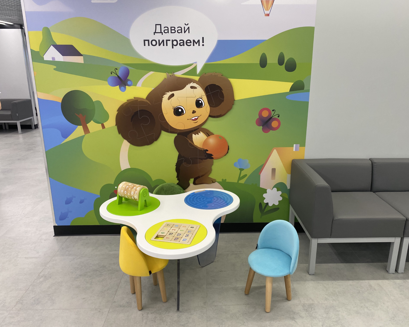 На входе и в помещении развесили шарики, в том числе, с номером отделения. Обновили оборудование, интерьер, установили монетницу. Появился кофейный аппарат, но он пока не работает — выбирают, кто будет обслуживать. Также в офисе оборудовали детскую зону.