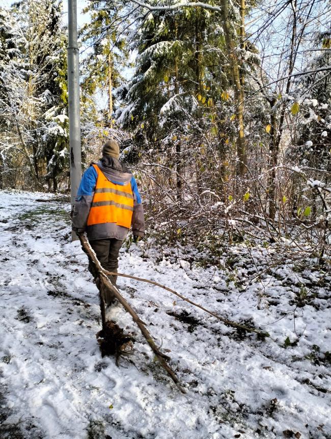 После аномального ветра и снегопада в ночь на 2 мая в Зеленограде были повреждены сотни деревьев. На расчистку заваленных пешеходных дорожек ушло две недели, но в лесу работы продолжаются.