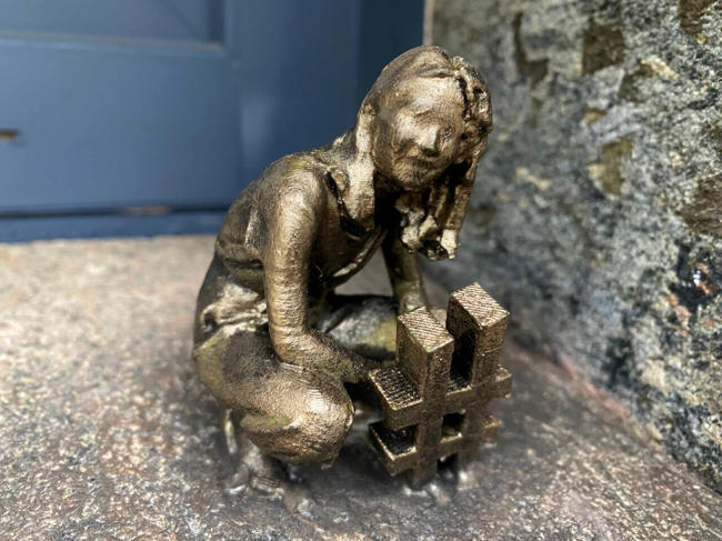 Фигурки довольно хрупкие: они выполнены из PLA-пластика, текстурной пасты, акрила и эмали. У некоторых уже повреждены тонкие детали — порой догадаться, что в композиции есть ноты, можно не сразу.