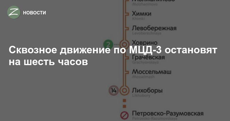 В субботу 22 ноября с 13:30 до 15:30 не будет движения поездов между Лихоборами и Ленинградским вокзалом.