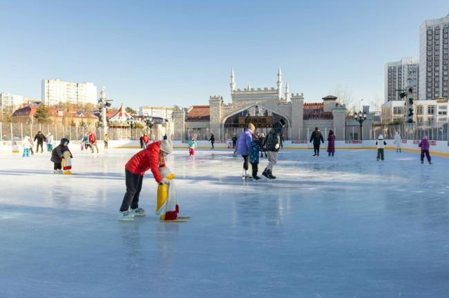 Большой бесплатный открытый каток с искусственным льдом работает по сеансам: будни — 11:00, 13:00, 15:30, 18:00, 20:30; выходные: 10:00, 12:30, 15:00, 17:30, 20:00.