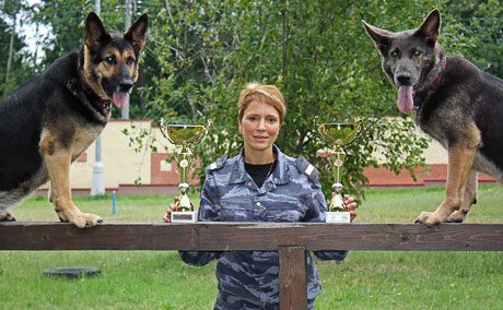 Соревнования московских специалистов-кинологов проходили в конце июня в Зональном центре кинологической службы Главного Управления МВД России по Москве. Участвовали 15 команд от всех столичных округов, в том числе подразделения ОМОНа и УВД метрополитена, сообщили Zelenograd.ru в пресс-службе УВД округа. Старший сержант милиции, специалист зеленоградского Центра кинологической службы УВД Наталья Косолапова завоевала два первых места в личном зачете. Победителями стали и питомцы ЦКС: по общерозыскному профилю — восточно-европейская овчарка Ювентина, по поиску и обнаружению наркотических веществ — восточно-европейская овчарка по кличке Северная Пальмира (в быту просто Аля).