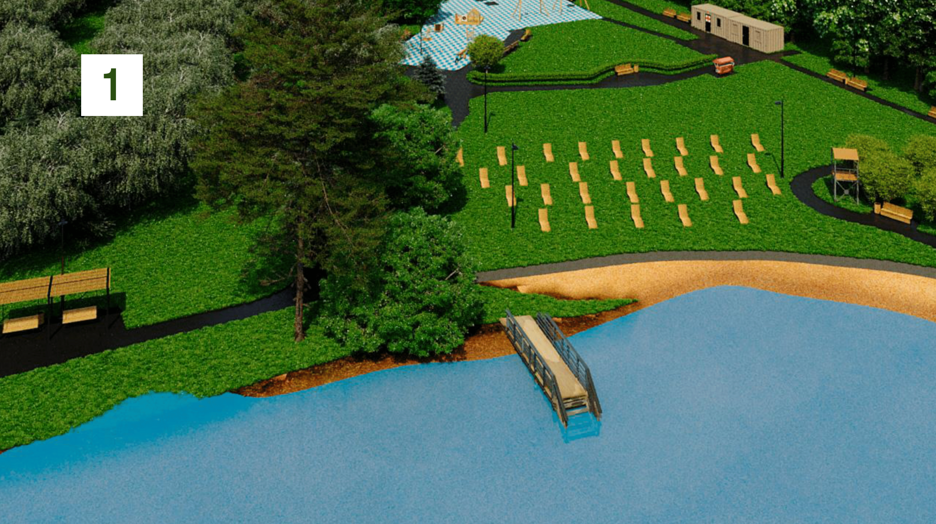 1. Обновлённая пляжная зона: уменьшенная песчаная часть и обновлённый мостик для входа в воду.
