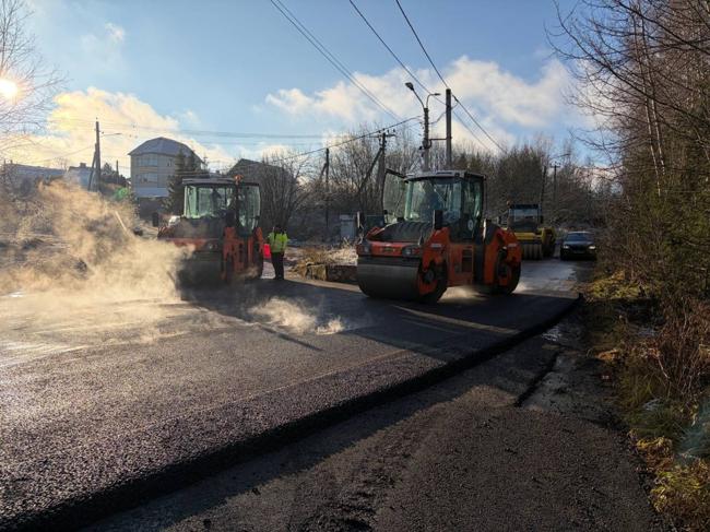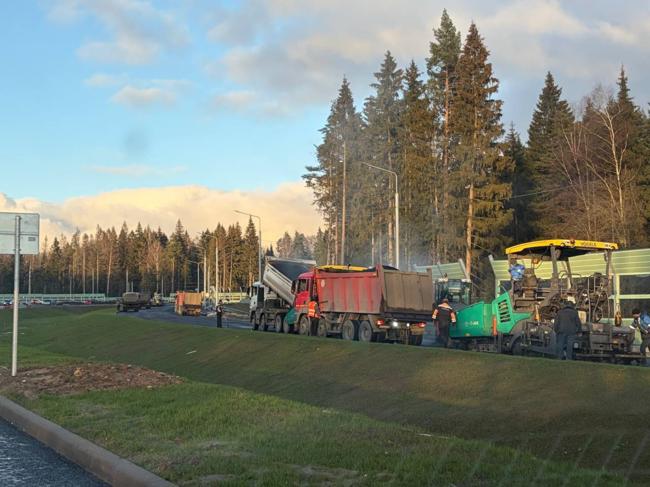 Сейчас на всех участках уже уложены нижний и основной слои асфальтобетонного покрытия, ведётся подготовка к укладке верхнего слоя. Продолжается монтаж наружного освещения.