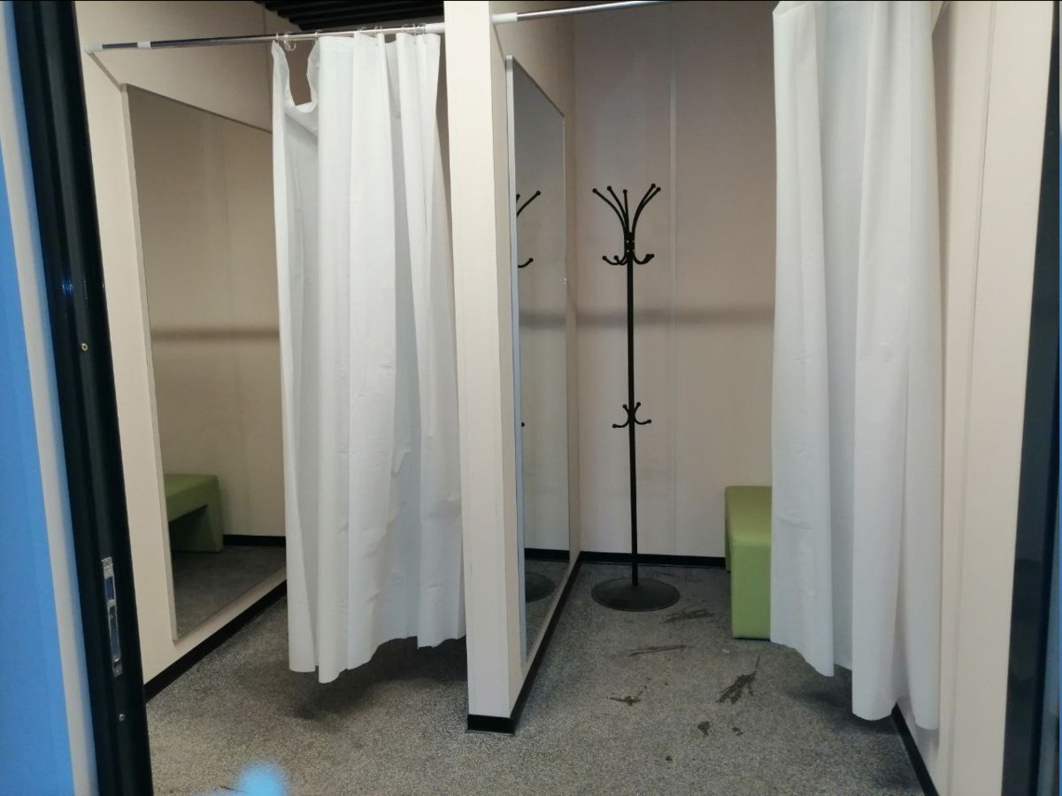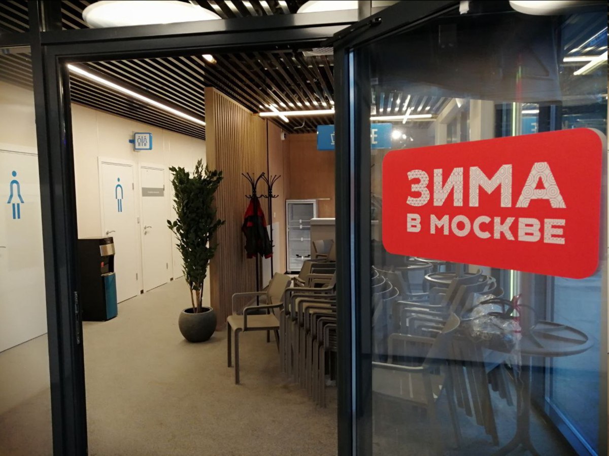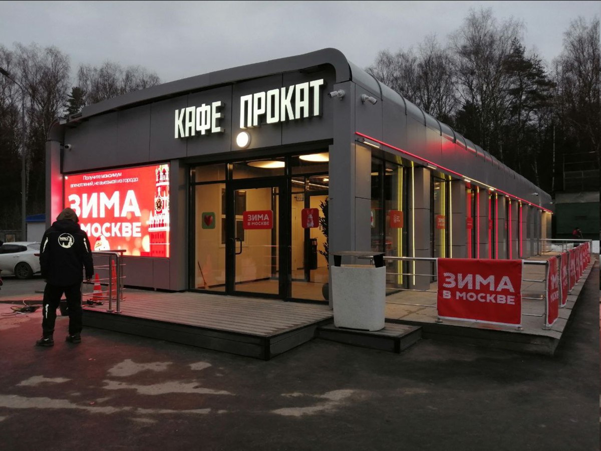 Это не просто новая площадка, которая может работать в условиях тёплой зимы — рядом поставили здание с теплыми раздевалками, прокатом, туалетами, медпунктом, в будущем появится кафе (судя по документам мэрии, столики кафе летом расположат на веранде).