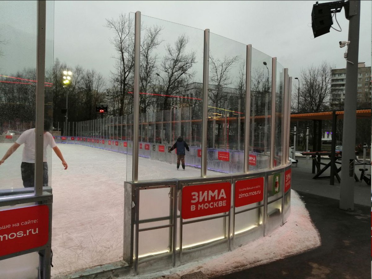 На месте хоккейной коробки возле корпуса 165 сделали современный каток с искусственным охлаждением, который будет работать при температуре до +10 градусов.