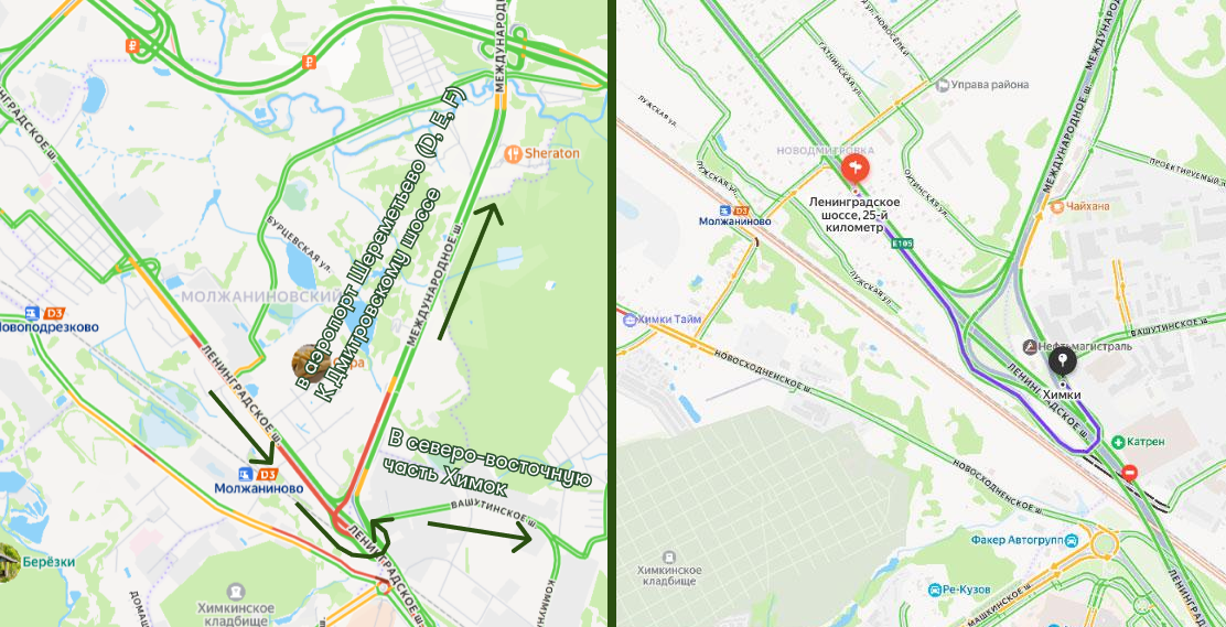 Раньше подъезд к южной группе терминалов аэропорта Шереметьево (D, E, F) со стороны Зеленограда и области был одним из самых неудобных. Водителям приходилось сначала протиснуться через слияние потоков с Ленинградского и Международного шоссе, потом поворачивать через перегруженное кольцо у ТЦ «Мега», затем выезжать на Ленинградку в обратном направлении — маршрут был неудобным, долгим и непредсказуемым.