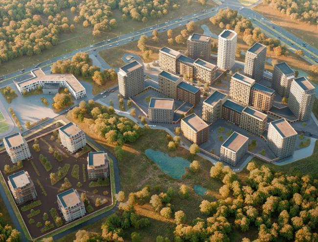 18 жилых домов и школу могут построить на месте заброшенного коттеджного поселка «Кутузовская слобода». Визуализацию без указания источника опубликовал канал «Инсайды рынка недвижимости Москвы», по данным которого застройщик «пытается согласовать 143 тысячи кв.м жилья и учебно-воспитательный комплекс на 750 мест».
