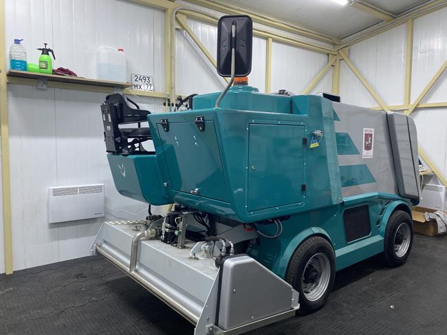 Финальную обработку льда выполняет техника с ножом, который снимает неровности, а затем полирует лёд: сзади у машины установлена тряпка с горячей водой — она доводит поверхность до «зеркального» состояния. Выехать на лёд машине можно только после того, как толщина подушки достигнет примерно 5 сантиметров — сейчас по полю толщина неодинакова из-за «горбатого» рельефа.