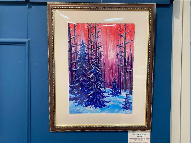 Выставка «Новогодние мечты» открылась на втором этаже в корпусе 607А. В экспозиции — художественные работы учащихся арт-студии «Креатив», авторам — от 7 до 15 лет. Ребята рисуют в разных техниках: акварель, гуашь, цветные карандаши, аппликация.