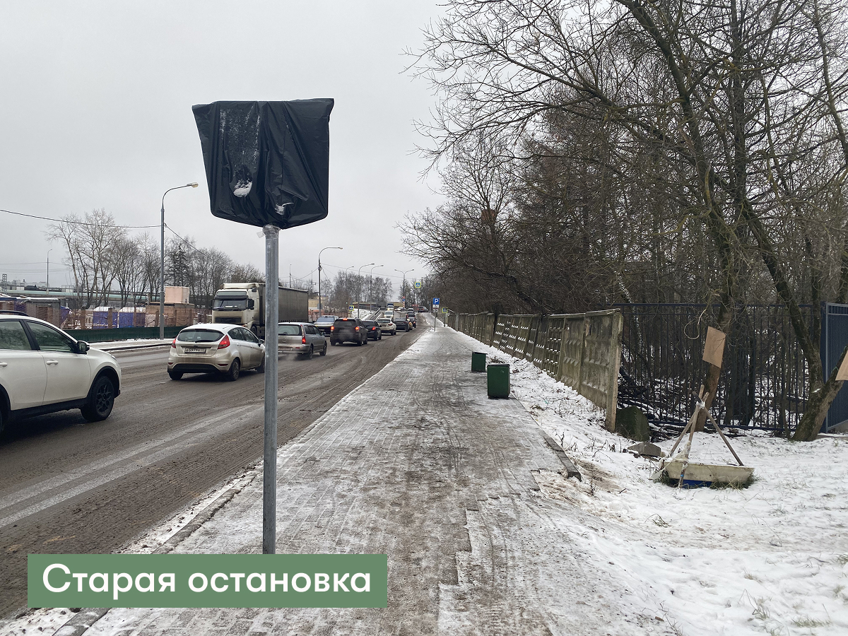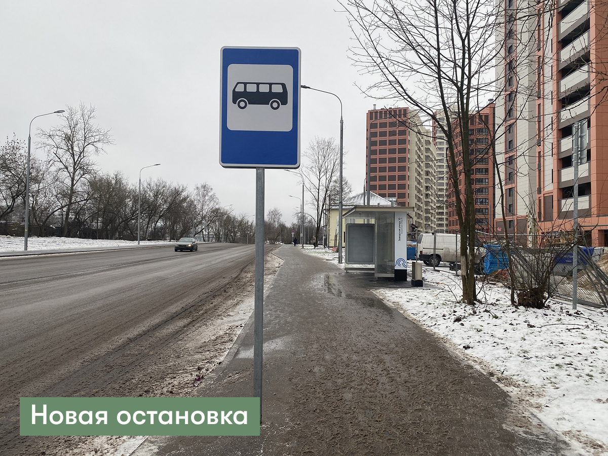 Новые остановки установили ещё в октябре. Один павильон расположен рядом с МФЮА, второй — напротив, у строящихся домов 10к1 и 10к2. Некоторые пассажиры уже ждут автобусы именно там.
