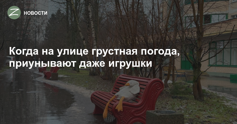 Сегодня утром плюшевый гусь устроился на скамейке в 3-м микрорайоне так, будто вышел ненадолго проветриться, посмотрел на лужи, вздохнул и решил просто посидеть — без спешки, без планов и без веры в солнце. Настроение — строго «около нуля».