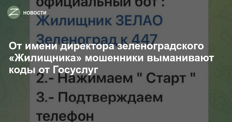 Жители Зеленограда сообщают о мошеннических сообщениях в телеграме, которые приходят якобы от директора «Жилищника» Адсалама Дударова. Под предлогом «актуализации» людей просят перейти в «официальный бот Жилищника» и передать «номер ключа» — на самом деле это будет одноразовый код из смс для входа на портал «Госуслуг». Получив этот код, злоумышленники могут зайти в личный кабинет жертвы.