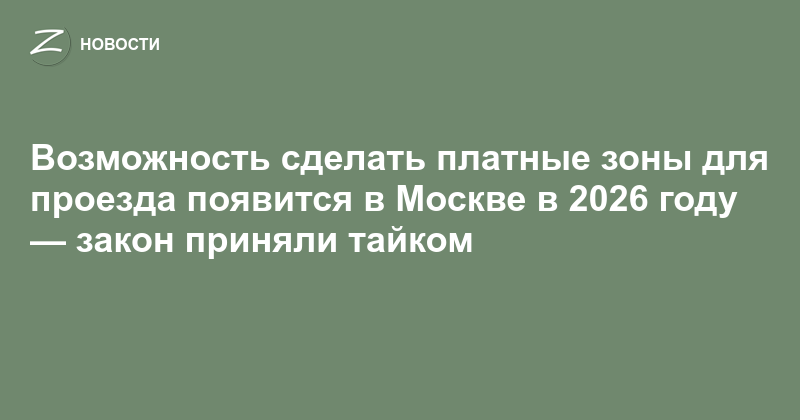 Госдума приняла в третьем чтении закон, который дает властям Москвы право вводить платные зоны для проезда транспорта. Под «платной зоной» в документе понимается совокупность дорог общего пользования (или их участков) в определённых границах, проезд по которым становится платным.