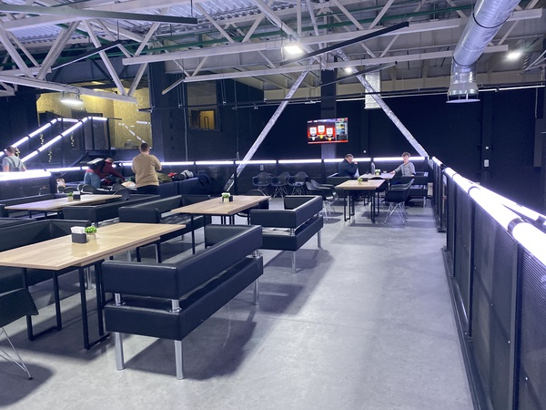 В ожидании заезда можно отдохнуть на втором этаже и понаблюдать за гонками со смотровой площадки.