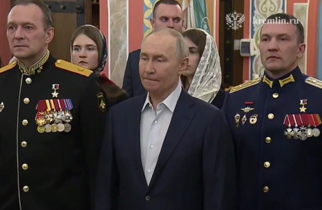 После богослужения Путин сказал присутствующим детям, что Христа называют Cпасителем, а «воины России как бы по поручению Господа выполняют миссию по защите Отечества и спасению Родины».