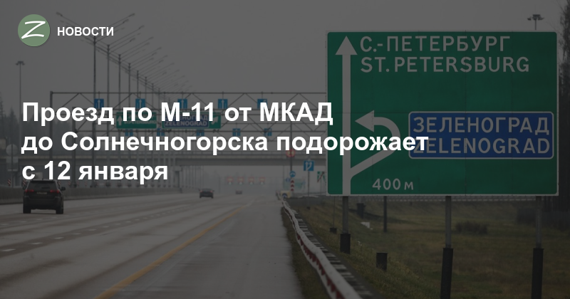 Проезд по М-11 от МКАД до Солнечногорска подорожает с 12 января 09.01.2026 ZELENOGRAD.RU