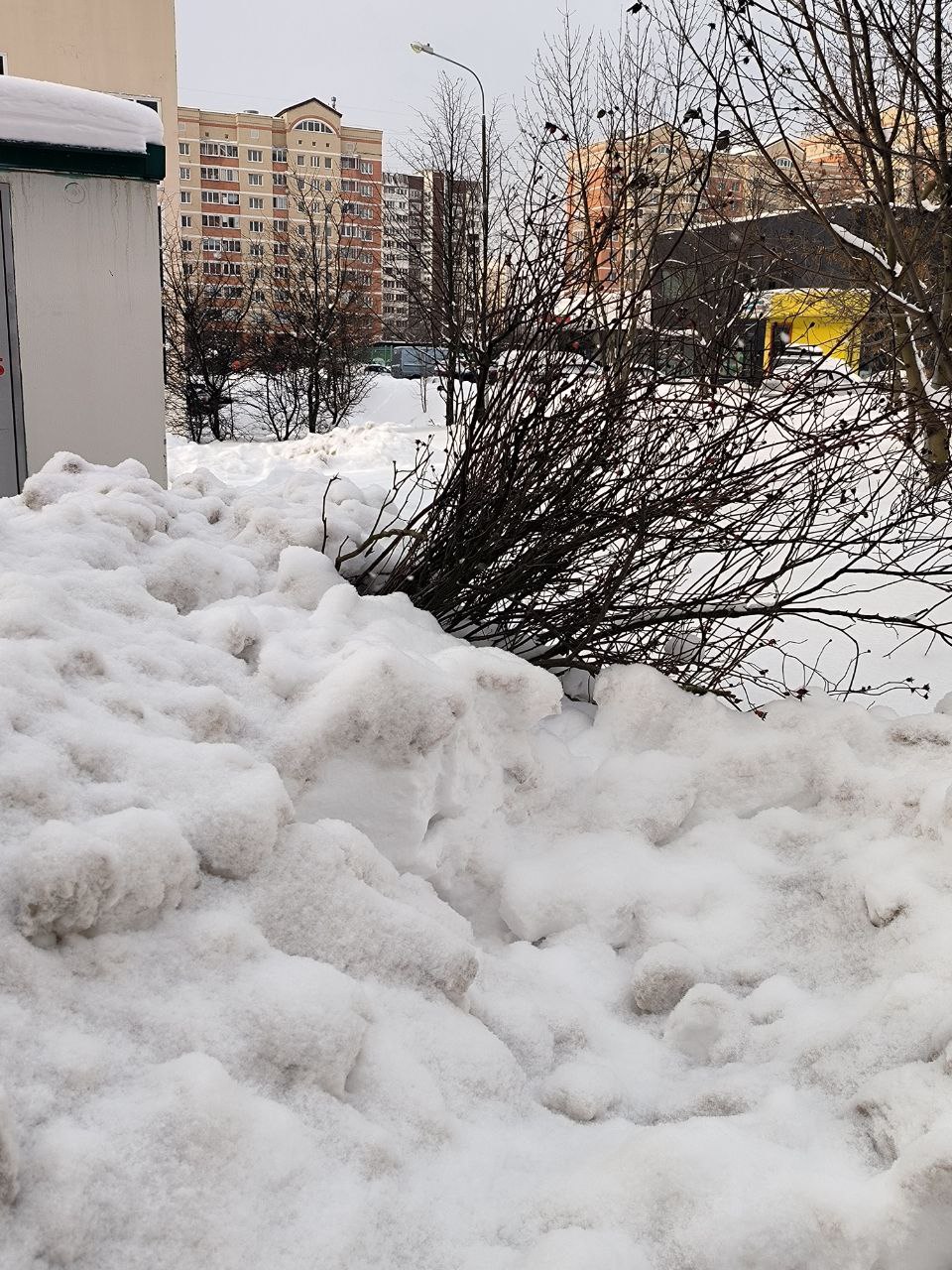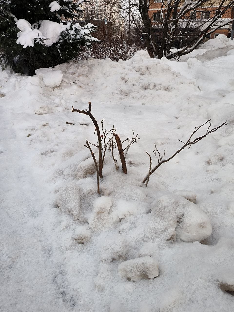 А теперь на него сдвинули трактором тонну спрессованного снега и доломали окончательно. А второй куст, что рос напротив, буквально сровняли с землёй" , — пишет читательница «Зеленоград.ру» Дарья о ситуации возле корпуса 2019.