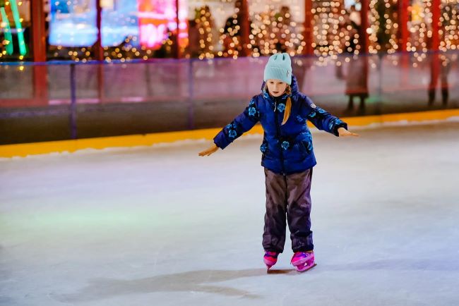 На площадке работает большой открытый каток с искусственным льдом. Покататься можно бесплатно, но обязательно запишитесь.