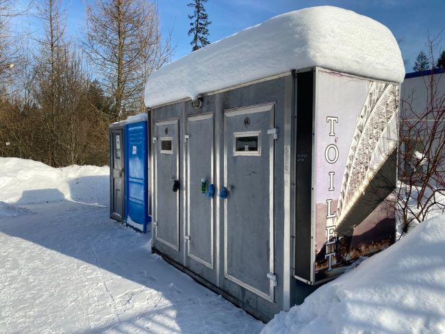 Рядом с зоной старта установлены несколько туалетных кабин, которые должны работать круглосуточно — однако фактически работает только одна. При этом внутри чисто.