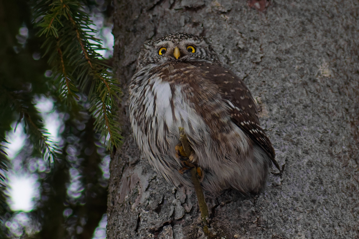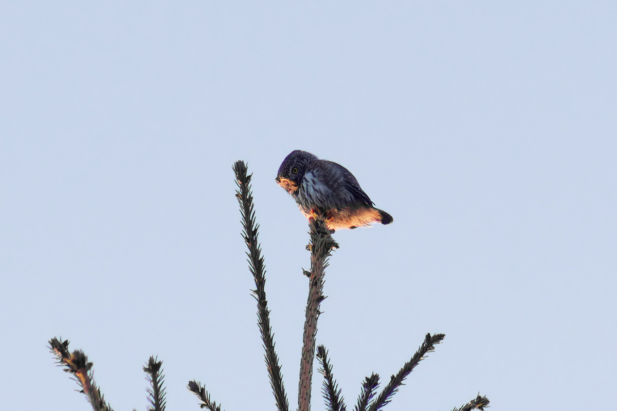 — Он охотится днём: большинство сов охотится ночью, а воробьиный сыч чаще всего — утром и вечером. Поэтому иногда его можно заметить при хорошем освещении, как на этих снимках.