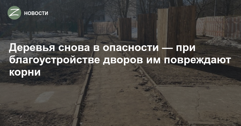 С прошлого года во дворах устанавливают крупные дорожные бордюры, для которых приходится рыть глубокое основание. Часто это приводит к повреждению корней растущих рядом деревьев.
