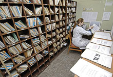 Приказ № 734 Минздравсоцразвития «О порядке хранения амбулаторной карты» утверждает следующий алгоритм: «Карта хранится в регистратуре: в поликлиниках по участкам и в пределах участков по улицам, домам, квартирам; в центральных районных больницах и сельских амбулаториях — по населенным пунктам и алфавиту. Карты граждан, имеющих право на получение набора социальных услуг, маркируются литерой „Л“. В случае госпитализации больного в стационар, объединенный с поликлиникой, карта передается в стационар и хранится в медицинской карте стационарного больного. Выдача медицинских карт на руки пациенту возможна только с разрешения главного врача учреждения».