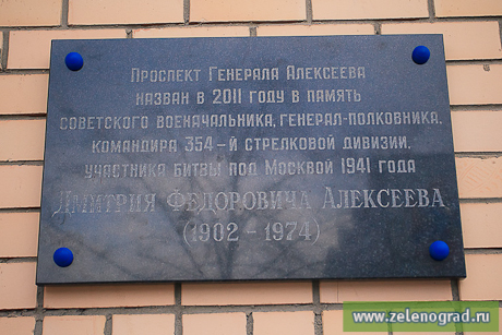 Решение о переименовании части дорожной магистрали в Зеленограде было принято в октябре столичными властями. Это дорога от площади Юности до площадки «Алабушево» Особой экономической зоны. Новый проспект проходит по маршруту: проезд 4803 (сквозной проезд через площадку «Алабушево») — 3-й Западный проезд — 1-й Западный проезд — Центральный проспект. Теперь эта дорога официально называется проспектом Генерала Алексеева. В июне этого года решение о присвоении имени генерала Алексеева новой магистрали было принято депутатами муниципального собрания района Силино . Правда, они предлагали иное название — «Алексеевский проспект». Идея нового проспекта принадлежит окружному Совету ветеранов.