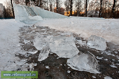 Ледяную композицию— горку из матового льда со ступеньками и ограждениями — ломали постепенно с начала января. Сначала разбили украшения в виде драконов, а на днях кто-то выломал верхние ограждения и бордюры на скатах. Верх горки полностью снесен. Это вандальные действия, считают в управе района Савелки — горка не могла «развалиться» сама по себе. О случившемся извещены подрядная организация и полиция. «О том, что горка сломана, мы узнали вчера утром, сразу же осмотрели её, и поставили в известность подрядчика», — рассказали Zelenograd.ru в управе. Также районные власти обратились в окружное УВД с просьбой обеспечить безопасность для жителей, устроить ограждение или охрану сооружения. Сейчас горкой пользоваться нельзя. Сегодня будет решаться вопрос о проведении проверки по факту вандальных действий.