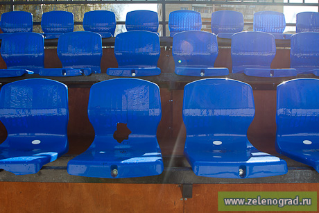 После ремонта футбольное поле с недоделанной искусственной травой превратилось в болото, универсальная площадка и силовые тренажеры снесены, в раздевалках выбиты стёкла, сиденья на трибунах испорчены, о благоустройстве территории и говорить не приходится.
