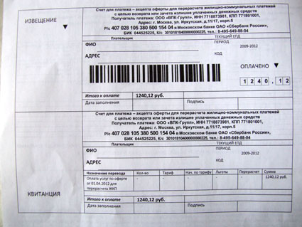 ООО «ВПК-Групп», являющееся получателем платежа, и не скрывает, что рекламный листок оформлен «под платежку» специально. «Публичная оферта и квитанция к ней сделаны таким образом, чтобы их не выбросили сразу в урну», — сообщается на сайте компании. Здесь же объясняется, какие именно услуги предлагается оплатить жителям. «ООО „ВПК-Групп“ учреждено в январе 2012 года для реализации задачи по направлению жителям публичного предложения по взаимодействию для перерасчета коммунальных платежей. Задачей созданной организации является оказание услуг гражданам, желающим реализовать свое право требования к управляющим компаниям исполнить взятые обязательства по содержанию и ремонту жилых домов». То есть, за 1240 руб. 12 коп. компания предлагает проверить, как работает управляющая компания, и сделать перерасчет, если услуги не были оказаны в полной мере. Впрочем, за эти деньги человек получит только «комплект документов с пояснениями что, когда и каким образом нужно делать». А специалисты компании будут помогать лично уже за другую сумму — 3888 рублей. В этом случае предлагается стать участником программы общественного движения «Наш Город — Наша Страна». В этом случае, сообщает фирма, «Ваши интересы будут представлять наши специалисты для решения вопроса по оказанию услуг ЖКХ Вашей управляющей компанией в полном объеме и/или возмещение, либо зачисление в качестве переплаты, ранее уплаченных Вами платежей, направленных на содержание и ремонт Вашего дома».