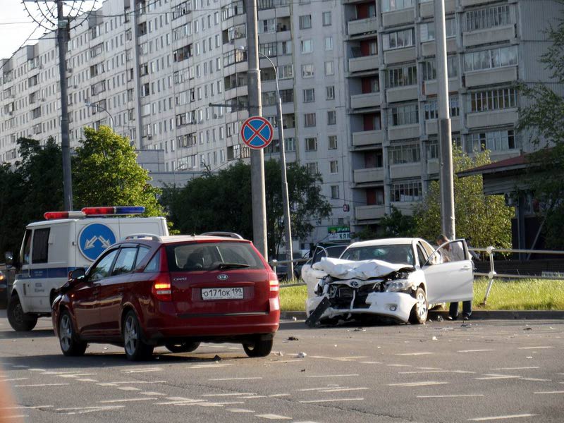 Автомобиль «Тойота Камри» следовал по Панфиловскому проспекту в сторону Ленинградского шоссе. На перекрестке напротив кафе «Лесное» водитель выехал на запрещающий сигнал светофора и столкнулся с двумя машинами — «Тойотой Раф-4» и «Киа Сид». Иномарки двигались в попутном направлении по проспекту от улицы Летчика Полагушина в сторону улицы Болдов Ручей. После столкновения «Тойота Камри» уехала.