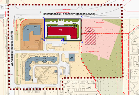 В обсуждаемом генеральном плане застройки подробностей мало. Понятно лишь, что при торговом комплексе будет 95 машиномест (из них 57 на подземной стоянке). Площадь застройки — 2100 кв.м., а общая площадь самого объекта — 6000 кв.м. Из них надземная часть — 3400 кв.м., подземная — 2600.