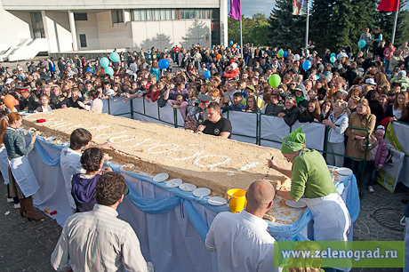 Раздачу можно и нужно было бы сразу продумать, а не заставлять толпу обезумевших людей стоять по часу ,дабы получить кусочек тортика..