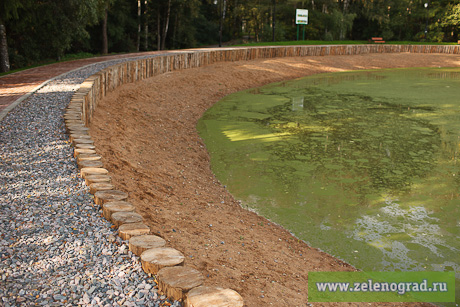 Правда, сам пруд, наполненный цветущей зеленой водой, сейчас больше напоминает болото. В зеленоградской «Дирекции заказчика ЖКХиБ», курирующей работы, Zelenograd.ru это объяснили тем, что воду наливали с опозданием и в небольшом количестве. Теперь её нужно долить в чашу водоема, и на следующий год «такого не будет», сказали в Дирекции.
