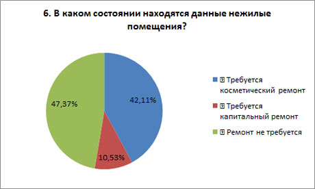 Согласно опросу участников конференции, более половины коммерческой недвижимости округа нуждается в ремонте, причем каждое десятое помещение — в капитальном. Поэтому арендаторы хотят, чтобы был принят закон Москвы, в том или ином виде учитывающий неамортизированную стоимость неотделимых улучшений, проведенных в арендуемом у города помещении.