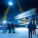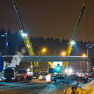 В ночь с 19 на 20 января на Солнечной аллее со второй попытки установили пролетные конструкции пешеходного моста. Процесс установки фиксировали фотокорреспонденты Zelenograd.ru.