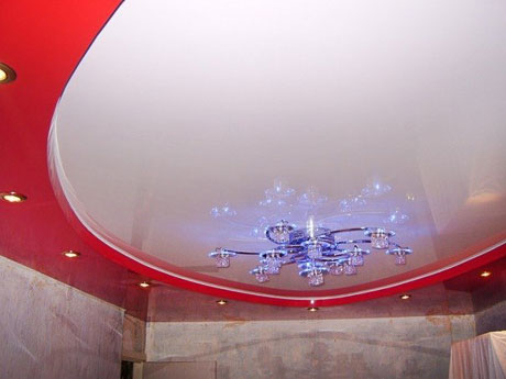 Если в натяжном потолке не будут предусмотрены точечные светильники, то потолок опустится в среднем на