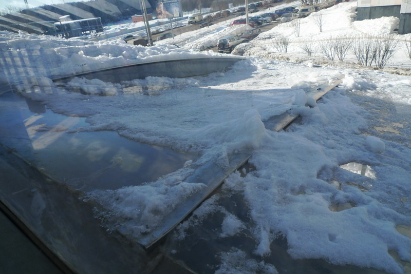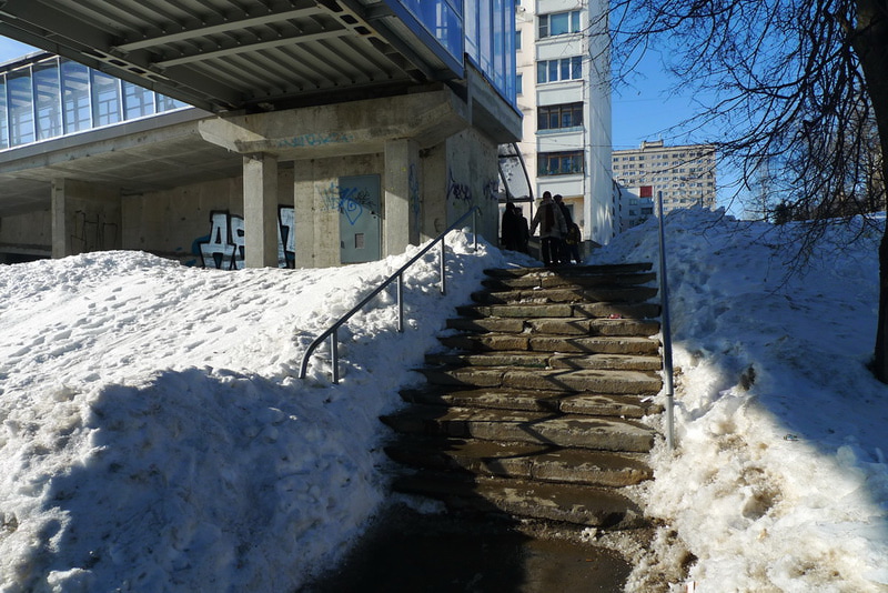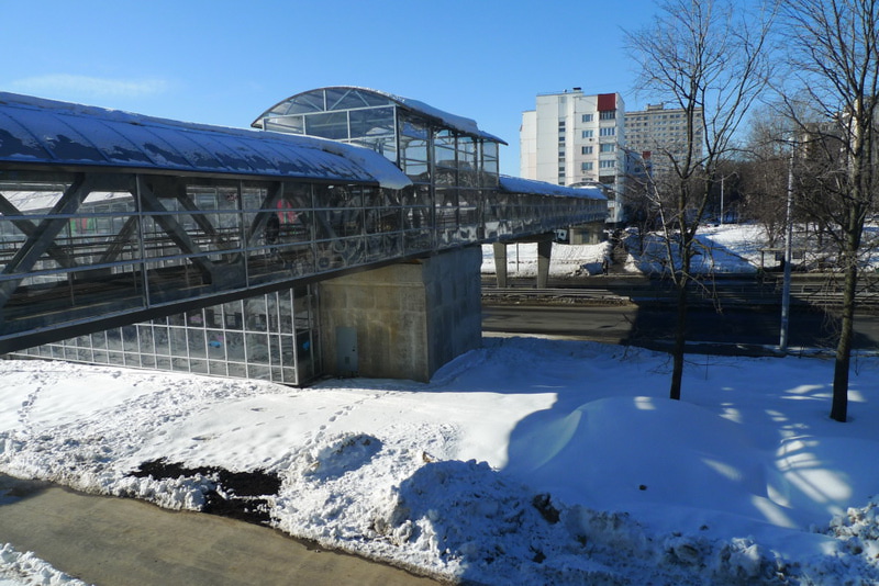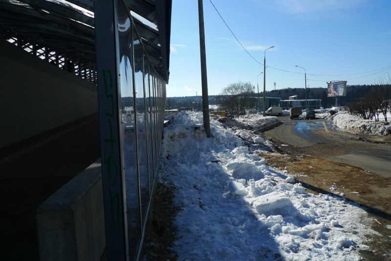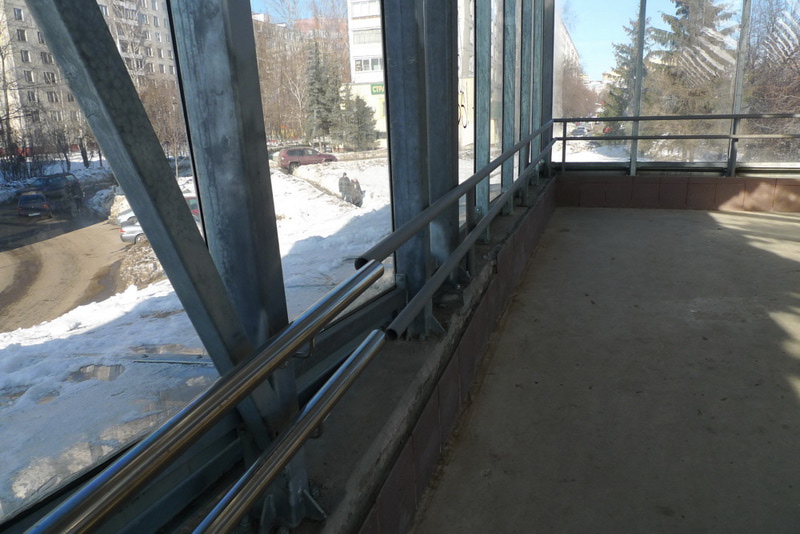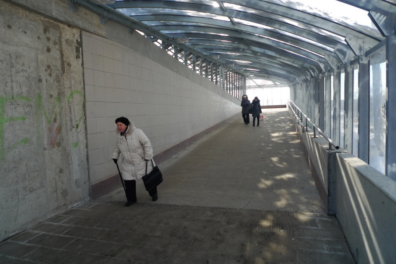 Но мы в России... приехал в 4-й на автобусе, сошёл... хорошо я был без детской коляски, а то пришлось бы на руках колясочку поднимать( где альтернативный маршрут, не понял) для попадания в широченный пандус (сделанным под нужным углом), коврики положили в незаконченный переход это очень хорошо, поручни не понятны и их ход (мелочь), оргстекло прогибается и кое где вышло из резиновых уплотнителей рам (мелочь, что то где то не докрутили, не рассчитали толщину оргстекла и что будет снег, а потом дождь). Константин писал, что снег с крыш перехода может угрожать автолюбителям, я добавлю ... и пешеходам.
