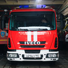 Автолестница — машина длиной в 15 метров с раздвижной лестничной стрелой — предназначена для поднятия пожарных на высоту и спуска пострадавших с верхних этажей зданий. Длина лестницы 55 метров, это примерно