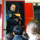 Ребятам показали среди прочего оснащения резиновые коврики-подушки, которые работают как домкраты — такую «подушку» можно подсунуть под бетонную плиту, под которую нельзя подлезть ни руками, ни гидравлическим инструментом; потом коврик надувается и приподнимает груз на
