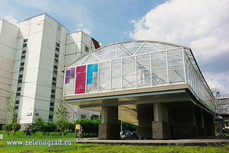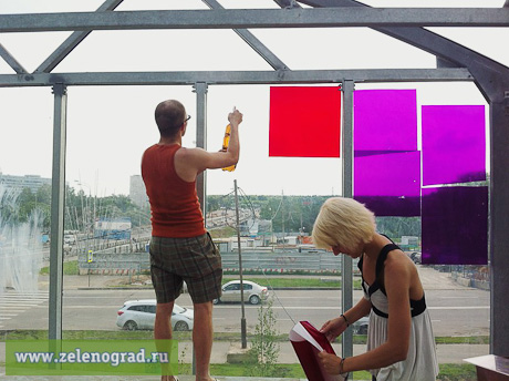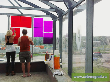 Надземный переход между 4 микрорайоном и Центральной площадью открыли в ноябре прошлого года. Сейчас он изрядно запущен — возможно потому, что формально пока ещё является строительным объектом и содержать его должны строители. Летом здесь жарко из-за нагревающихся на солнце стекол. Участник проекта «партизанинг» вместе с помощницей помыли стекла одной из секций моста и оклеили разноцветными витражными пленками. «Сделать переход красивее и комфортнее — просто, — рассказала Zelenograd.ru участница акции Галина. — Витражная пленка создает интересный свет в переходе, к тому же становится немного прохладнее». Подходили люди, интересовались, все были настроены доброжелательно, многим идея понравилась, отметила Галина.