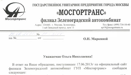 Об этом сообщила на форуме Zelenograd.ru Ольга Маркина, ставшая очевидцем происшествия и обратившаяся с жалобой в ГУП «Мосгортранс».
