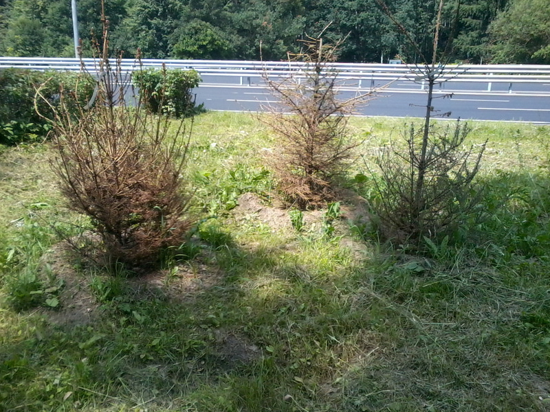 А зачем вырубать на вид здоровые деревья сейчас, если новые посадки только через год?